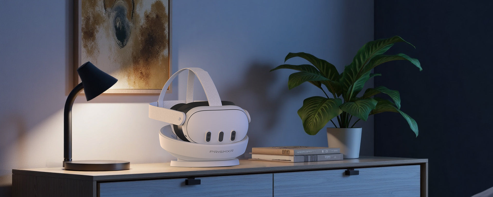Smart Charging — Docking Stations Built for XR. Power up your immersive experience with PrismXR’s lineup of advanced charging dock station. All in one place, designed specifically for next-gen headsets like Meta Quest 3, Quest 3S, Apple Vision Pro and other smart glasses. These docks offer a seamless way to charge, store, and protect your device. Combines fast, reliable USB-C charging with intuitive magnetic connectors or drop-in placements, eliminating cable clutter and wear from frequent plugging. Experience a safe, efficient and convenient charging method with PrismXR charging dock station.
