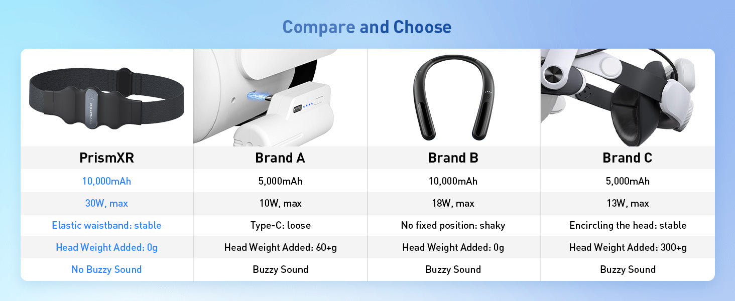 Stay Cool, Charge Fast: Carina W1 features a cooling system with thermal insulation and heat-dissipating materials to maintain comfort during use. Its discreet cable design ensures a seamless, uninterrupted power connection to your VR headset.